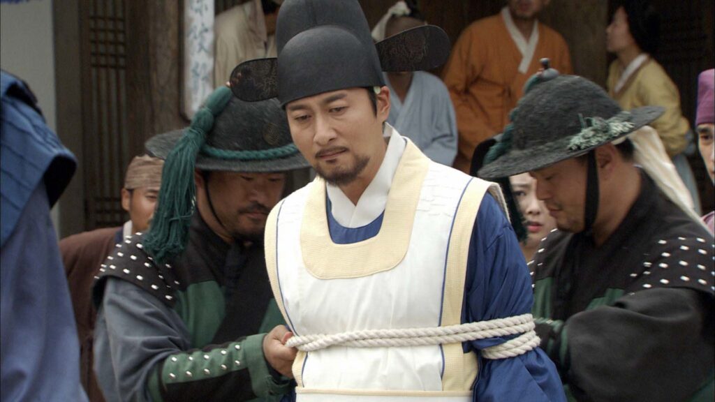 ジュンの治療で恭嬪が回復し、ついに王が重臣たちを押し切って赦免を宣言。