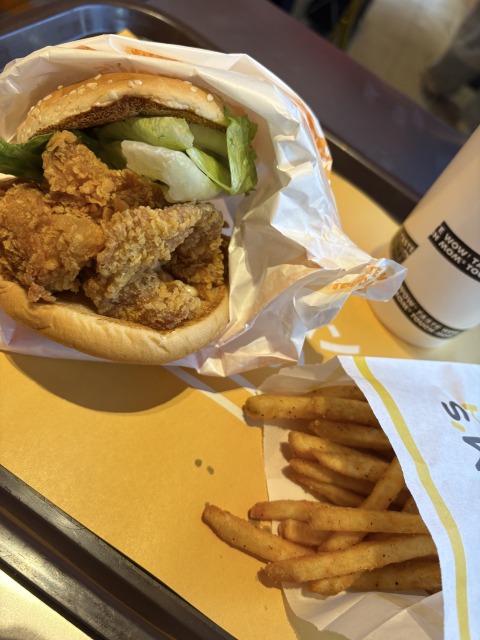 実際に食べてみると、味は韓国本店とほぼ同じで、ソースの風味やチキンの食感、バンズの柔らかさまで忠実に再現されている印象でした。注文後に一つひとつ調理されるため、提供されるバーガーは常にアツアツでフレッシュ。揚げたてならではのサクサク感が際立ち、満足度の高い一品です。